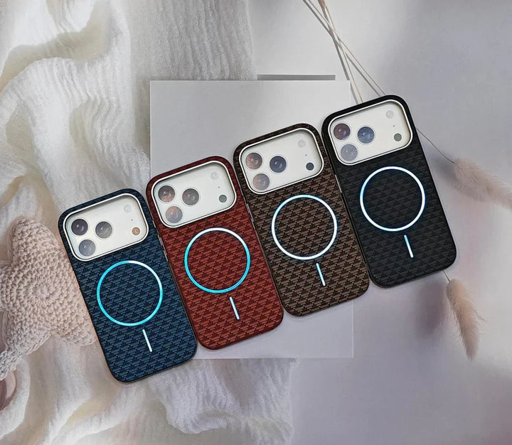 MagSafe Fabric Pattern Case for iPhone – A textured, fashion-forward case with full MagSafe compatibility and a stylish woven design for a premium everyday look.